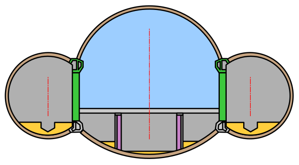 Разновидностью односводчатой станции является двухъярусная кроссплатформенная пересадочная станция, в данном случае станция принимает поезда сразу двух линий на четыре пути с пересадкой между линиями в едином конструктивном объёме. Конструкция узла сочетает все преимущества односводчатых станций глубокого заложения, позволяющих значительно уменьшить её воздействие на природный массив за счёт компактности и отказа от соединительных коридоров. Единственной станцией такого типа является «Спортивная». В настоящее время она не используется как пересадочная, есть лишь задел для строительства будущей Кольцевой линии.