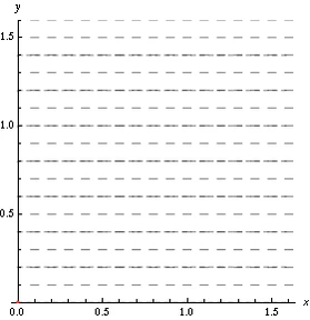 - синяя линия соответствует «треку»[1] (англ. streakline): (изменяющейся) линии, которую увидит наблюдатель, если из начала координат непрерывно выпускать струйку синих чернил.