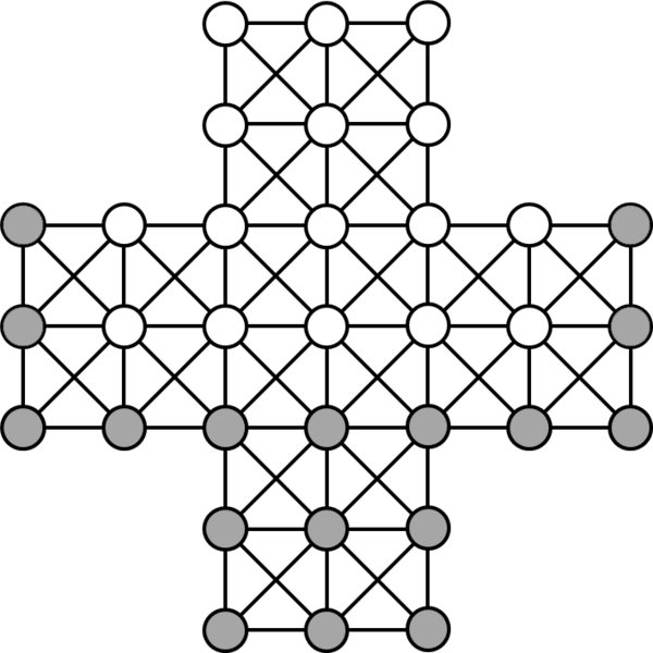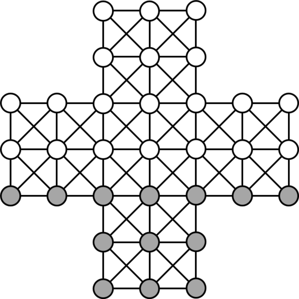 В наиболее старом варианте игры[1][4], перед началом 13 «гусей» расставляются на трёх нижних горизонталях доски с 33 полями[5], а игрок-«лиса» ставит свою шашку на любое свободное поле. Начинают игру «гуси». Игроки делают ходы поочерёдно, передвигая свои шашки по горизонтали или вертикали (но не по диагонали) на любое свободное поле[1][2][6].