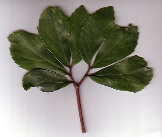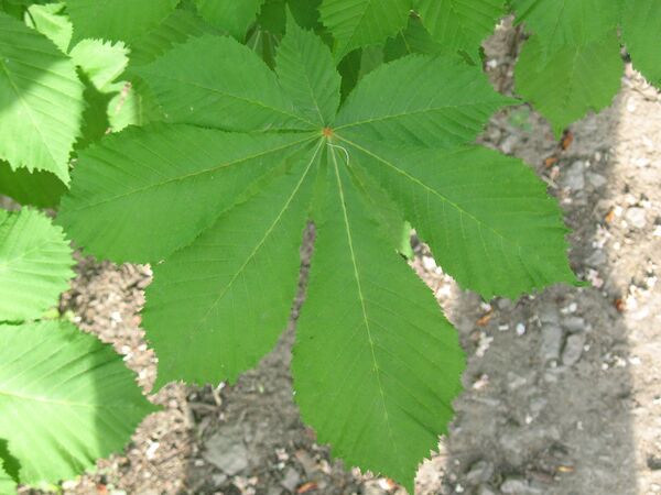 - У пальчатых (или лапчатых) листьев все листовые пластинки расходятся по радиусу от окончания корешка подобно пальцам руки. Главный черешок листа отсутствует. Примерами таких листьев может служить конопля (Cannabis) и конский каштан (Aesculus).