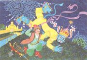 Сказки для детей писали башкирские писатели С. Сурина[16] (детская драматургия, обработка народного фольклора), Ф. Яхин (бытовые сказки), К. Даян (обработка народных сказок), Дина Талхина[17], Биккул (башкирская литературная сказка), Н. Фазлаева и М. Буракаева «Легенды об Ильментау».