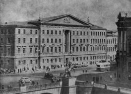 Здание было реконструировано в 1947—1950 годах с частичным использованием старых стен по проекту Б. Н. Журавлёва и И. И. Фомина. При этом был создан новый фасад, и восстановленное здание стало, по словам В. Г. Исаченко «привычной и неотъемлемой частью Невского проспекта»[8].