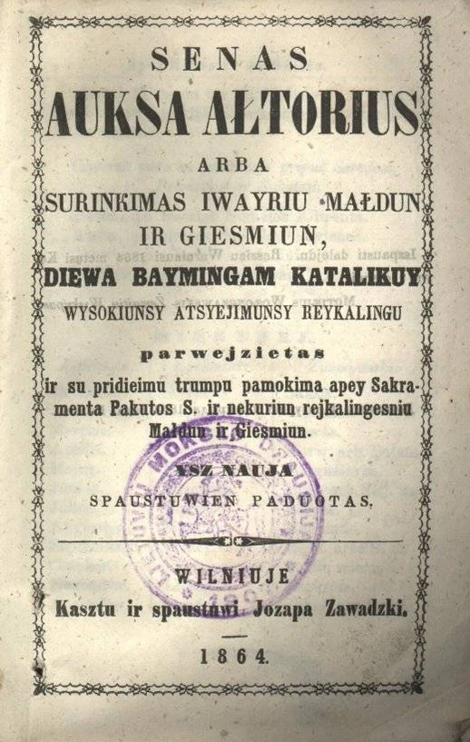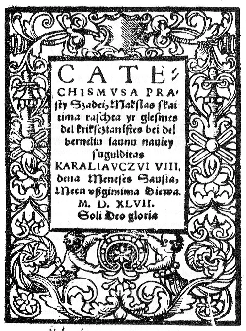В 1595 году в Вильне была издана первая напечатанная на территории Литвы книга на литовском языке «Катехизис» (лит. «Katekizmui», католический), переведённая с польского языка Микалоюсом Даукшой.