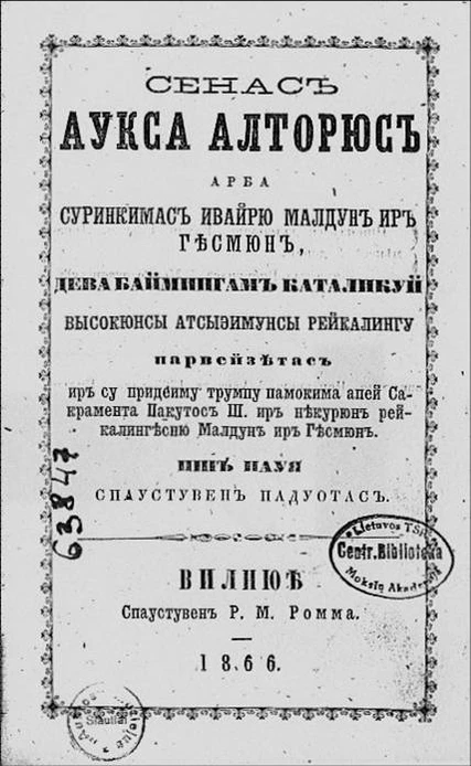 - Моксласъ скайтима рашта летувишка дѣль мажу вайку… — Вильнюс, 1867 (И. Кречинский)