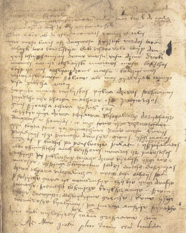 Наиболее ранний письменный памятник литовского языка датируется 1503—1515 гг. и представляет собой молитву, написанную от руки на последней странице выпущенной в Страсбурге книги «Tractatus sacerdotalis». Текст придерживается дзукийского диалекта и, по всей видимости, списан с более раннего оригинала[1].