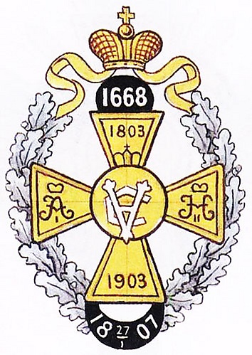 - Штандарт с надписью: «1803—1903», с Александровской юбилейной лентой;