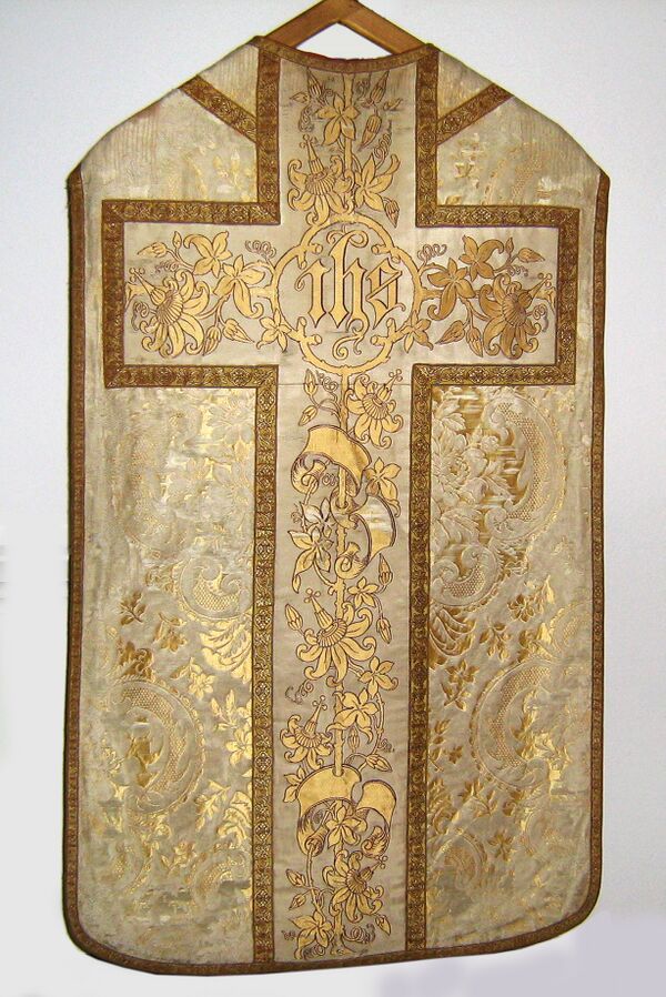 Облачения белого цвета разрешается заменять облачениями с золотым и серебряным шитьём по белому фону.