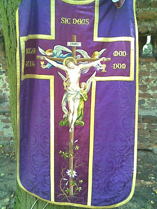 - Фиолетовый цвет носится в следующих случаях, из которых первые четыре перечисленных не включены в более поздние издания Римского Миссала: