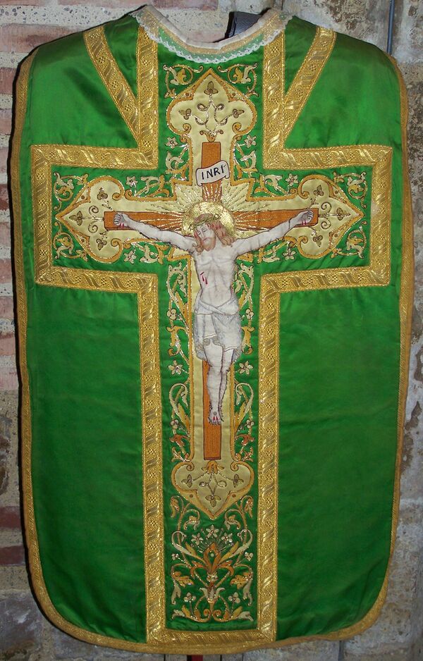 Использование в литургии одеяний разного цвета имеет глубоко символический характер. Белый цвет традиционно воспринимается в Европе как цвет чистоты, невинности; а также радости и триумфа. Красный цвет — цвет крови, с древних времён Церковь считала красный — цветом мучеников. Фиолетовый цвет в латинском обряде символизирует покаяние. Чёрный цвет символизирует траур и скорбь; зелёный — цвет жизни и надежды.