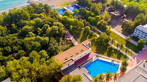 У пансионата имеется собственных пляж длиной 100 метров и шириной 50 метров. Он покрыт галькой вперемешку с песком. Песчаные зоны находятся ближе к корпусам пансионата.