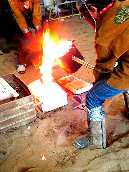 Заливка формы металлом происходит так же как и при литье в песчаные формы. Выбросы и запахи, присутствующие при сгорании материалов формы от контакта с жидким металлом, засасываются вакуумной системой, не выделяясь в атмосферу, что говорит об экологичности процесса.