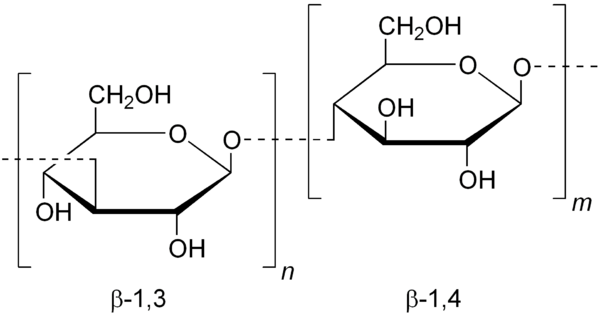 Лихени́н, (C6H10O5)n — полисахарид, содержащийся в лишайниках и состоящий из остатков D-глюкозы, связанных между собой на 73 % β-1,4-гликозидными связями и на 27 % — β-1,3-гликозидными связями. Имеет линейную структуру. Представляет собой смесь гомологичных полимеров различной длины[1]. Молекулярная масса (162,14)n × (1,5 — 3,0) · 106[2].