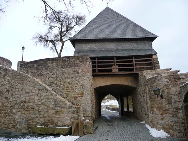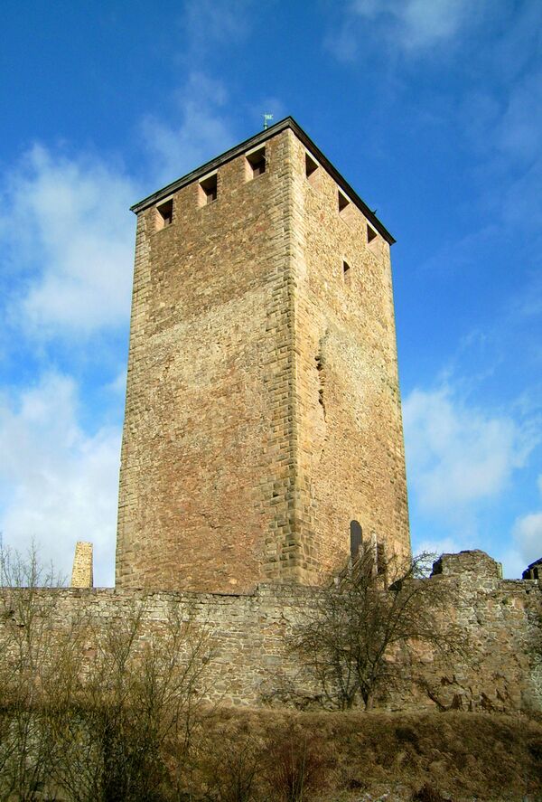 Раньше всего появился Верхний замок (Обербург). Это произошло во второй половине XII или в самом начале XIII века. Крепость построили в самой высокой точке отрога. Первоначально в Обербурге возвели здание резиденции, бергфрид и кольцевую стену, к которой с внутренней стороны примыкали жилые постройки солдат гарнизона, кузнеца и других работников. В узкий двор можно было попасть только через единственные ворота. В XIV–XV веках в Верхнем замке постепенно построили новую просторную резиденцию для владельцев.