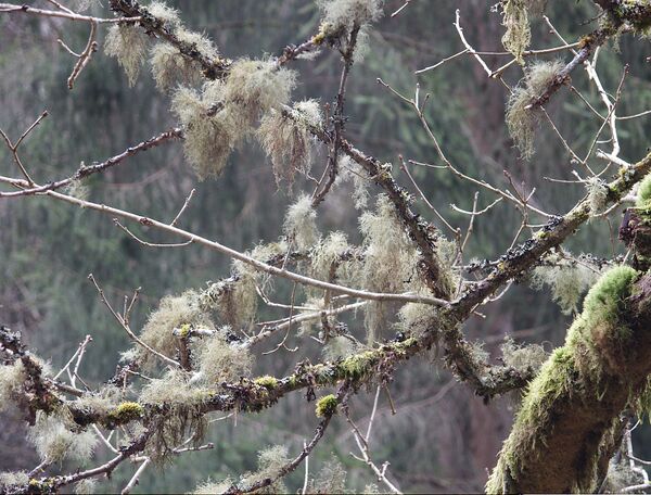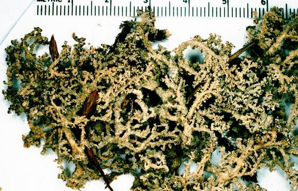 - Кустистые. У наиболее сложных с точки зрения морфологии кустистых лишайников таллом образует множество округлых или плоских веточек. Такие лишайники могут расти как на земле, так и свисать с деревьев, древесных остатков, скал.
