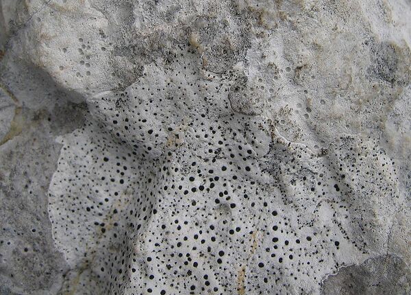 На скалах и утёсах лишайники являются важными первоначальными организмами. Они крепятся к поверхности горной породы или даже проникают внутрь. При этом сильно меняют внешний вид горных пород, особенно их цвет, и образуют вокруг себя углубления. Например, когда представители рода Verrucaria поселяются на известняке, тот покрывается чёрными углублениями перитециев — плодовых тел лишайника. После их отмирания поверхность породы густо усеяна ямками. Затем в них появляется зелёный слой водорослей. Несмотря на редкость этих видов, они играют важную роль в выветривании и почвообразовании, часто повсеместно охватывая скалы. Лишайники не делают различий между естественными и искусственными субстратами, покрывая стены, крыши, заборы, надгробия и другие постройки.