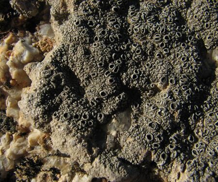 - Накипные, или корковые. Таллом таких лишайников представляет собой корочку («накипь»), его нижняя поверхность плотно срастается с субстратом и не отделяется без значительных повреждений. Накипные лишайники могут жить на крутых склонах гор, деревьях и даже на бетонных стенах. Иногда такие лишайники развиваются внутри субстрата и снаружи совершенно не заметны.