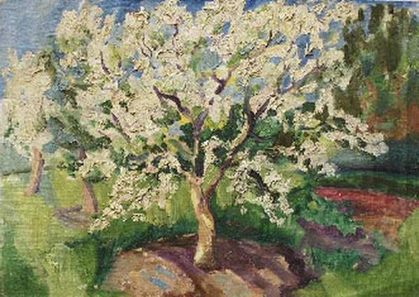 - январь — февраль 1912 — участвует во второй выставке «Бубновый валет»[5], преимущественно с пейзажами. Наиболее отмечаемые критикой работы — «Белый дом в саду» (С. С. Мамонтов, «Русское слово», 26 января 1912)[6] и «Утром. Шлях»[7]. Большинство картин, экспонированных на выставке, впоследствии попали в музеи России.