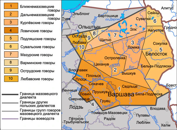 Черты, объединяющие ловичские говоры с остальными говорами мазовецкого диалекта: