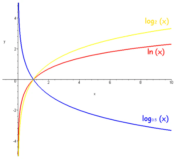 Кривую графика логарифмической функции часто называют логарифмикой[1]. Из формулы замены основания логарифма