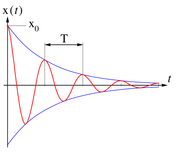 где A = x(0) — начальная амплитуда, t — время, ω = 2π/T — циклическая частота колебания.