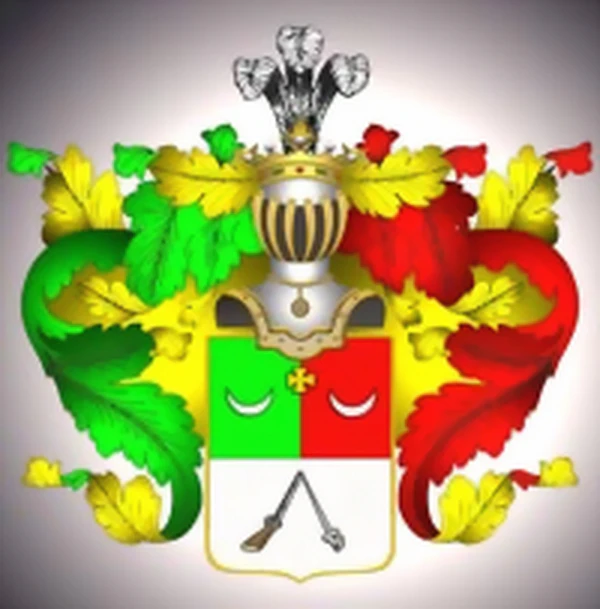 В верхней половине щита, в зелёном и красном полях изображён золотой крест и по сторонам две серебряные луны, рогами обращённые вверх. В нижней серебряной половине, наподобие стропила означены ружьё и шпага.