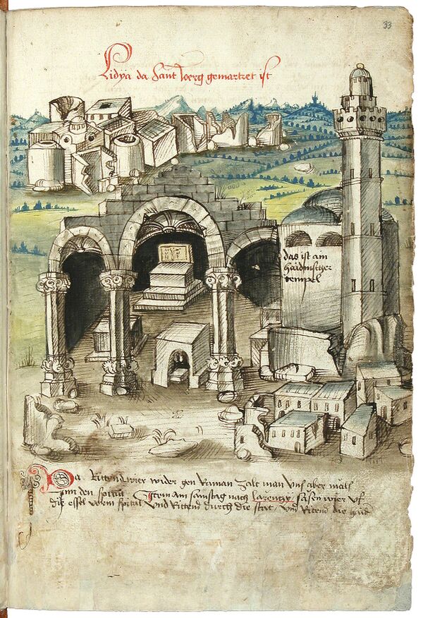 Главная достопримечательность — предполагаемая гробница Георгия Победоносца, над которой в VI веке была воздвигнута базилика. На её руинах крестоносцы позднее выстроили церковь, восстановленную после многочисленных разрушений только в 1870 году. Сохранились также две старинных мечети, бани и караван-сарай.