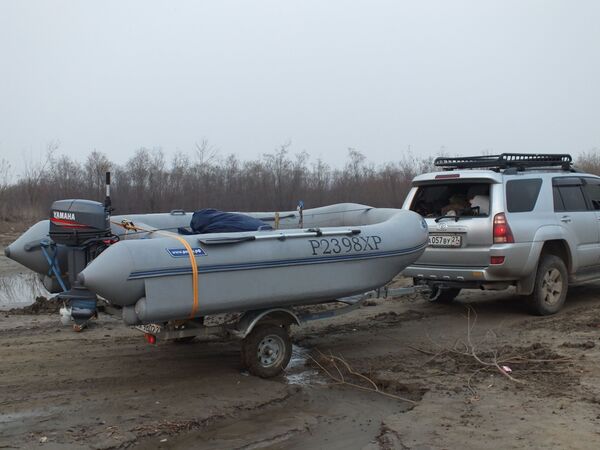 Не отцепляя машину загнать прицеп в воду до упора и отцепить лодку.