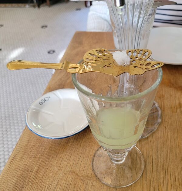 Вкус чистого абсента слишком горький для большинства пьющих, поэтому перед употреблением в него добавляют сахар (для абсента даже выпускается специальный кусковой сахар). Однако для растворения нужного количества сахара в абсент приходится добавлять воду, понижая его крепость[1]. Ложка потому занимает важное место в классическом ритуале разлития абсента: на ней размещается кусочек сахара, а сама ложка опирается на края бокала с абсентом. Ледяная вода из фонтана для абсента капает на кусочек сахара, создавая в бокале напиток с желтоватым молочным оттенком (фр. louche)[3].