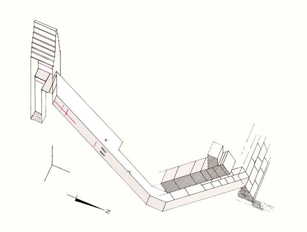 На первом этапе уже были сделаны около 12,70 м туннелей входа (нисходящий коридор) и примерно 11,60 м. восходящего коридора.