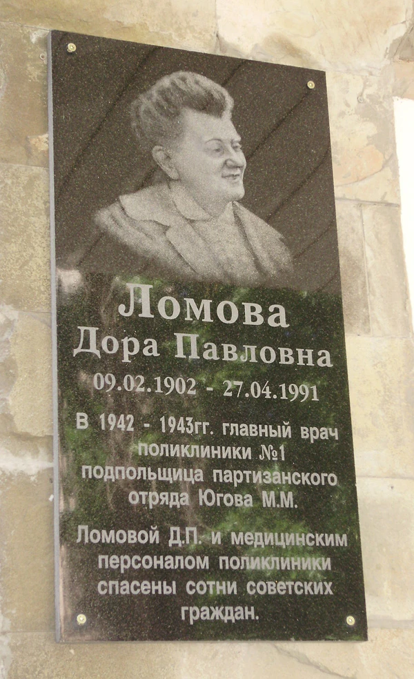 Мемориальную доску бывшему главврачу городской поликлиники номер 1 Доре Ломовой установили в Ростове-на-Дону на здании больницы.[1]