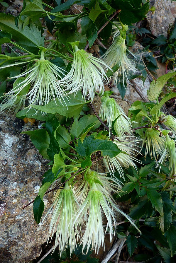 Вечнозелёный кустарник с усиками, цепкое растение, до 4 м и более в высоту. Листья объединены в пучки. Цветы, колокольчатые и подвесные, одиночные или в группах по 2 или 3, пахнут мёдом, большие, на длинной ножке, желтовато-белые, мохнатые, иногда усеяны красным. Цветёт зимой и весной (февраль-март). Плоды семянки.