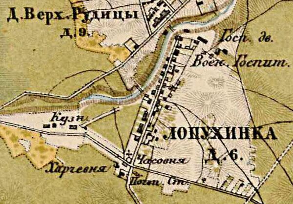 В пояснительном тексте к этнографической карте Санкт-Петербургской губернии П. И. Кёппена 1849 года она записана, как деревня Lopuchinka (Лопухинка) и указано количество её жителей на 1848 год: ингерманландцев-савакотов — 9 м п., 7 ж. п., всего 16 человек, русских — 89 человек[11].