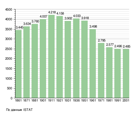 Население составляет 2532 человека (2008 г.), плотность населения составляет 79 чел./км². Занимает площадь 32 км². Почтовый индекс — 62020. Телефонный код — 0733.