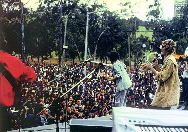 С 1986 по 1989 год в составе группы Стаса Намина «Цветы» вместе с С. Вороновым, А. Соличем, Ю. Горьковым и другими музыкантами выступал в мировом турне, принял участие в концерте «Japan Aid» с Питером Гэбриелом, Лу Ридом, Джексоном Брауном, Литтл Стивеном и другими.