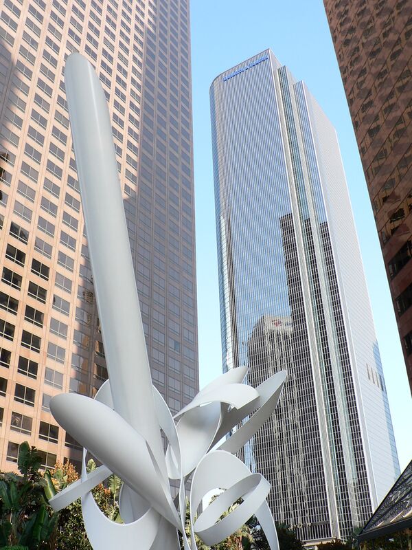 Для города характерна регулярная планировка и низкая плотность застройки — основная часть населения проживает в частных домах и виллах[297]. Высотные здания сконцентрированы в центральной части (до 1956 года закон запрещал строить в городе здания выше 43 м), и по состоянию на 2021 год 9 из 12 самых высоких зданий Калифорнии находятся непосредственно в Лос-Анджелесе[298]. Современная архитектура представлена значительным разнообразием жилых, коммерческих и производственных зданий, среди которых имеются работы Фрэнка Гери, афроамериканского новатора Пола Уильямса, Тома Мейна, Эрика Мосса и других известных архитекторов[299].