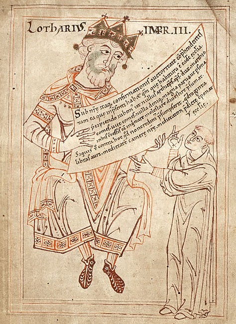 После прекращения франконской династии, 50-летний Лотарь был выбран 24 августа 1125 года в Майнце германским королём и коронован в Ахене 13 сентября того же года. Выбор Лотаря был победой клерикальной партии, враждебной франконским императорам.