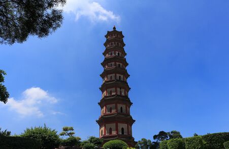 Восьмиугольная башня Лотоса, построена в 1612 году во времена правления Минской династии (1368—1644 гг.). Высота — 50 метров, состоит из 9 этажей. В 1938 году 2, 3, 4 и 7 этажи здания были разрушены во время обстрела японской армией, в 1981 году восстановлены на средства соотечественников из Гонконга и Макао. Башня Лотоса является объектом культурного наследия провинции Гуандун[1].