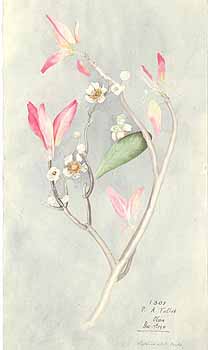 Пирамидальное метёлкообразное соцветие имеет длину от 15 до 20 см. Черешки цветов от 1 до 1,5 см длиной и гладкие. Белые обоеполые цветы имеют пять лепестков и радиально симметричны. Пять гладких чашелистников не одинаковы: два внешних яйцеобразны и заострены, имеют длину 7-8 мм и ширину 4-5 мм; три внутренних овальные, 6 мм длиной и 5 мм шириной. Гладкие лепестки сердцеобразны, длиной 1,7 см и 1,3 см шириной. 4-5 миллиметровые мужские цветки несут тычинки от 4 до 6 мм длиной и оранжевые пыльцевые мешки. Завязь белая, длиной 8 мм и шириной 3, имеет от 8 до 16 семяпочек. Рыльца длиной от 1 до 2 мм.
