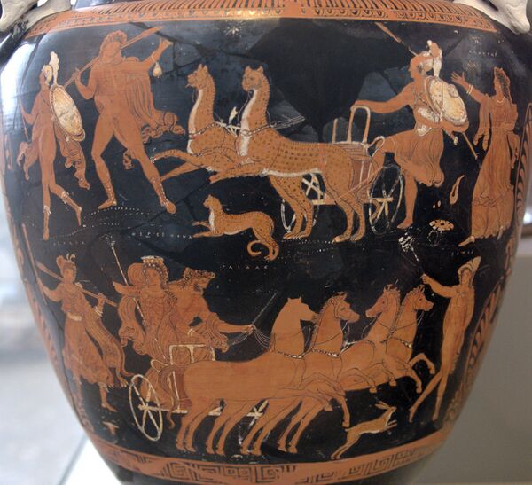 - Колесницу, запряженную крылатыми конями, Пелопу дал Посейдон. Колесницу Пелопа показывали во Флиунте.