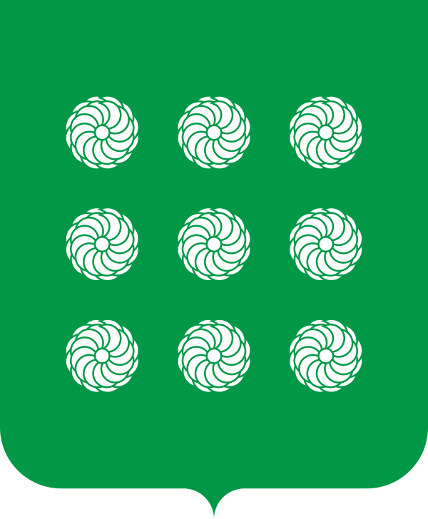 въ зеленомъ поле, «девять белыхъ или серебряныхъ фигуръ, на подобіе розъ, въ три ряда расположенныя».[6]