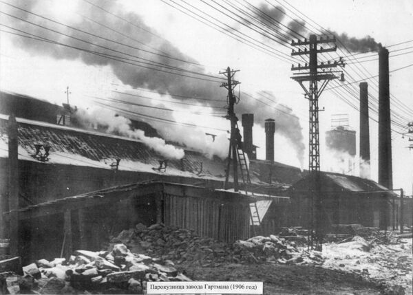 Владельцем завода являлся немецкий промышленник Густав Гартман, владелец завода Sächsische Maschinenfabrik в городе Хемнице (Саксония), которого пригласили в Россию в 1895 году с целью основания своего предприятия по производству паровозов.