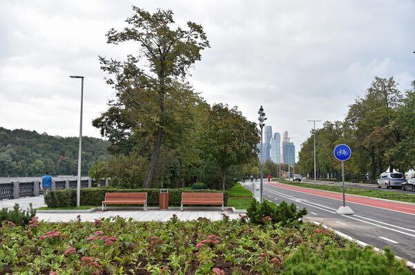 В ходе работ была выделена спортивная направленность этого места и его ориентация на пешеходов и велосипедистов. Так, проезжую часть на набережной сократили до двух полос, а освободившееся пространство выделили под пешеходную зону (располагается ближе к воде), велосипедную дорожку, дорожку для катания на роликах и беговую дорожку с прорезиненным покрытием[9]. Длина дорожек составляет около трёх километров[10][8].