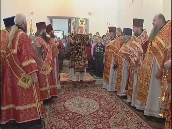В половине девятого утра раздался звон на собор, а в девять часов звон к поздней Божественной литургии. К этому времени уже весь храм был наполнен народом, который массами также стоял в церковной ограде и на прилегающей площади… Как только Владыка вошел в притвор храма, с правого клироса торжественно раздалась хвалебная песнь Богу «От Восток солнца до запад». Народ с радостным умилением и восторгом взирал на своего архипастыря. Владыке сослужили шесть священников и три диакона. Стройно и с воодушевлением пел многолюдный хор певчих. С особенным чувством и выражением были исполнены «Херувимская песнь», «Милость мира» и «Отче наш». Вместо причастного стиха был прекрасно пропет псалом «Внуши, Боже, молитву мою»…