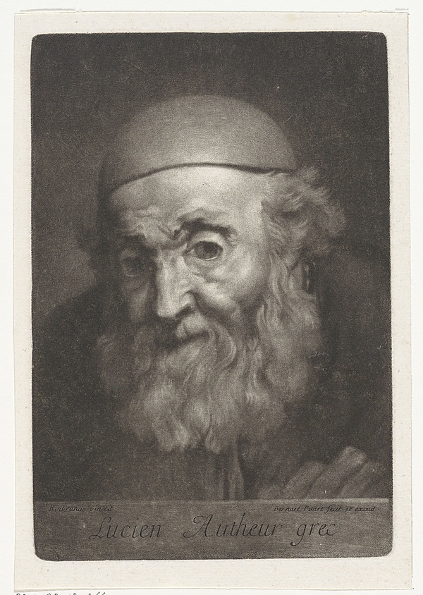 В XVII веке ряд писателей развивал идеи Лукиана о космических путешествиях, чему способствовало и развитие астрономических знаний. Лукиан и читавшие его авторы называются в числе главных источников вдохновения цикла «Иной свет» Сирано де Бержерака[226][227] и романа «Человек на Луне» Фрэнсиса Годвина: в обоих случаях авторы вдохновлялись и тематикой космических путешествий, и сатирой греческого автора[228]. В 1690 году иезуит Габриэль Даниэль написал «Путешествие в мир Декарта» (фр. Voyage du Monde de Descartes), в котором, прямо заявляя о влиянии Лукиана, критиковал картезианство[229]. Помимо фантастических сочинений Лукиана, с большим интересом читали и другие его произведения. Французский писатель Фенелон подражал «Разговорам мёртвых» Лукиана[230], произведения греческого автора изучал Джон Драйден[197], который высоко ценил Лукиана, называл его величайшим мастером иронии[231] и написал биографическое эссе о нём[232]. Перевод сочинений Лукиана на французский язык Никола Перро д’Абланкуром спровоцировал всплеск подражаний его работам в XVII веке, включая эротические сочинения. При этом подражатели перенимали и социально-критическую направленность творчества греческого автора, высмеивая современные порядки[233]. Влияние Лукиана выявляют в «Дон Кихоте» Мигеля Сервантеса, «Аркадии» Лопе де Вега, а также в отдельных сочинениях Диего Сааведры, Луиса Велеса де Гевары, Бартоломе Леонардо де Архенсолы[234], а переводчик «Правдивой истории» на испанский язык Франсиско Гомес де ла Регера написал продолжение этого сочинения, в котором критиковал придворных Филиппа IV, особенно его фаворита Оливареса[235]. В середине XVII века Рембрандт написал портрет Лукиана, в 1737 году оригинал был продан на аукционе в Амстердаме, и с тех пор его судьба неизвестна. Картина известна по гравюре меццо-тинто, выполненной в 1699 году Бернаром Пикаром[236].