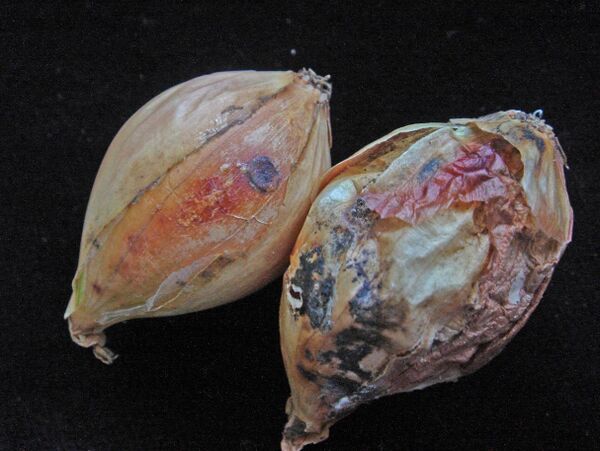 - Шейковая гниль (серая гниль шейки луковицы)[2]
