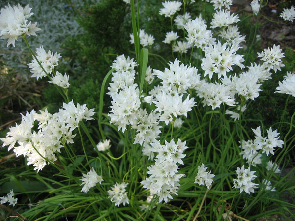 | Лук пскемский | Allium pskemense | Высота цветоноса — до 80 сантиметров. Соцветия крупные, шаровидные, очень плотные. Звёздчатые цветки — белые. Цветёт с середины июня до середины августа. Морозостоек, поэтому может выращиваться повсеместно. Съедобен. |