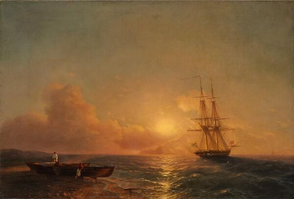 Иван Константинович Айвазовский (1817—1900) — выдающийся представитель русской живописи XIX века, происходивший из армянской семьи и большую часть жизни проживший в Крыму, в Феодосии. Его творчество относится к эпохе романтизма, когда в искусстве преобладал интерес к эмоциональному изображению природы и героическим сюжетам, а морская тематика отражала развитие русского флота и важные исторические события.