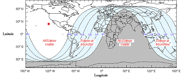 Жители Северной Америки могли наблюдать начало лунного затмения 21 декабря в 1:33 EST (или 20 декабря в 22:33 PST). В этот момент край лимба Луны начал входить в земную тень и соответственно край Луны начал окрашиваться в темно-красные тона. В течение часа вся видимая поверхность Луны покрылась тенью Земли и в 2:41 EST (23:41 PST) началось полное лунное затмение продолжительностью в 72 минуты.