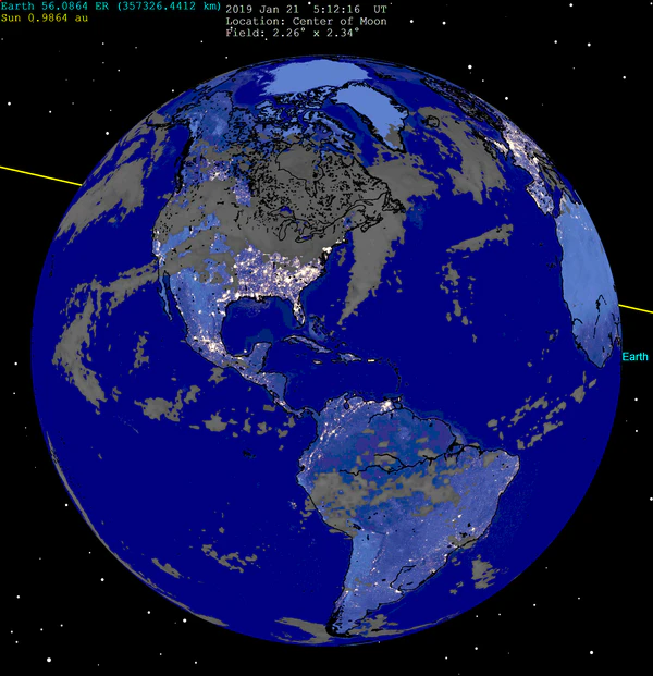 В Северной Америке и части Южной Америки затмение наблюдалось в вечерние часы 20 января по местному времени, для остальных территорий — 21 января (ночью или утром).