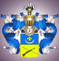 Герб потомства Ивана Ивановича Лутовинова: щит разделен двумя диагональными чертами от верхних углов к середине щита и одной перпендикулярно вниз на три части, из которых в верхнем, золотом поле. находится змий с красными крыльями, держащий во рту масленичную ветвь. В правом, красном поле, виден выходящий из серебряной городской стены лев, который в лапах держит кольцо и три таких же надеты на хвост (польский герб Правдзиц). В левом, голубом поле. летящий чёрный орел, имеет во рту золотой перстень, а в лапах серебряную подкову (польский герб Слеповрон). Щит увенчан дворянским шлемом и короной, на поверхности которой до половины выходит лев с мечом. Намёт на щите золотой, подложенный голубым и красным. Щитодержатели: два воина, один в латах с копьём, а другой в татарском одеянии, имеющий в руке лук, а за плечами колчан со стрелами[4].